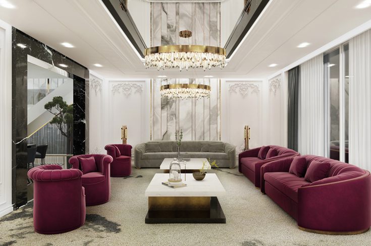 Large windows, minimal furniture, and a neutral palette promote a tranquil environment. Smart automation and ambient lighting complete the luxurious look.
